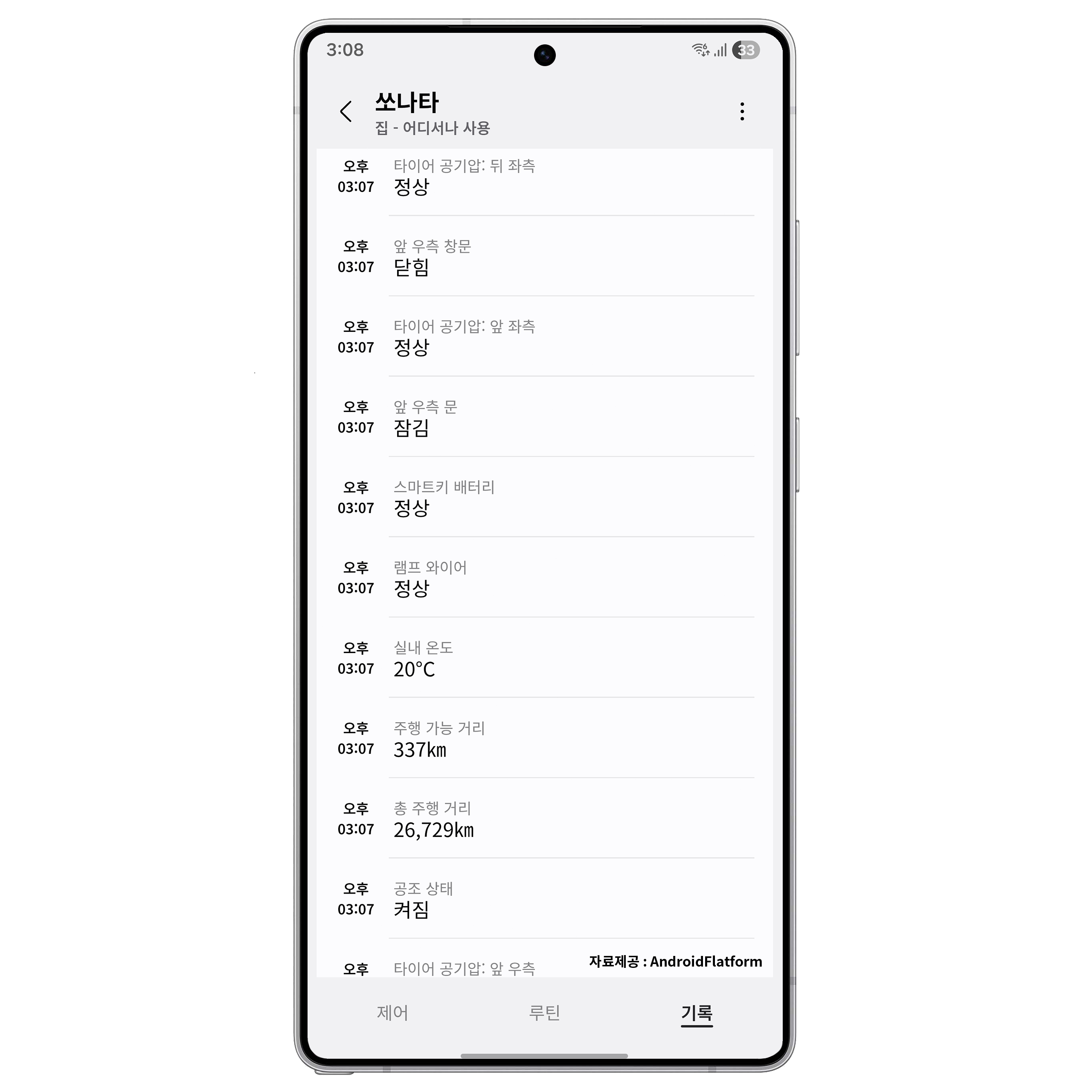 차량점검도 스마트싱스에 등록된 홈투카 서비스를 이용해 기록을 빠르게 확인할 수 있습니다.