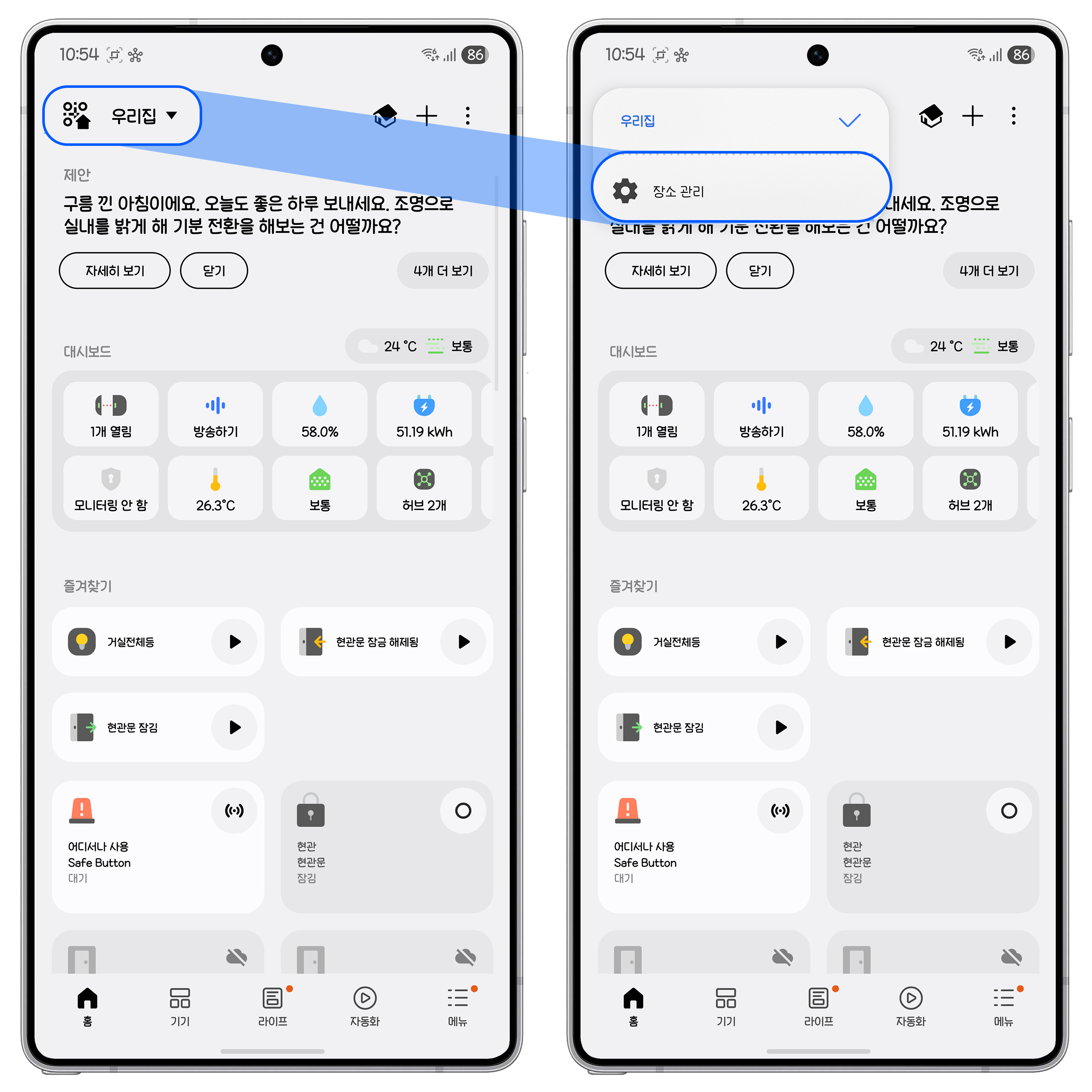 장소 관리 메뉴로 이동해서 우리 집의 장소를 관리하거나 권한을 줄 수 있는데요, 해당 메뉴로 이동해 보겠습니다.