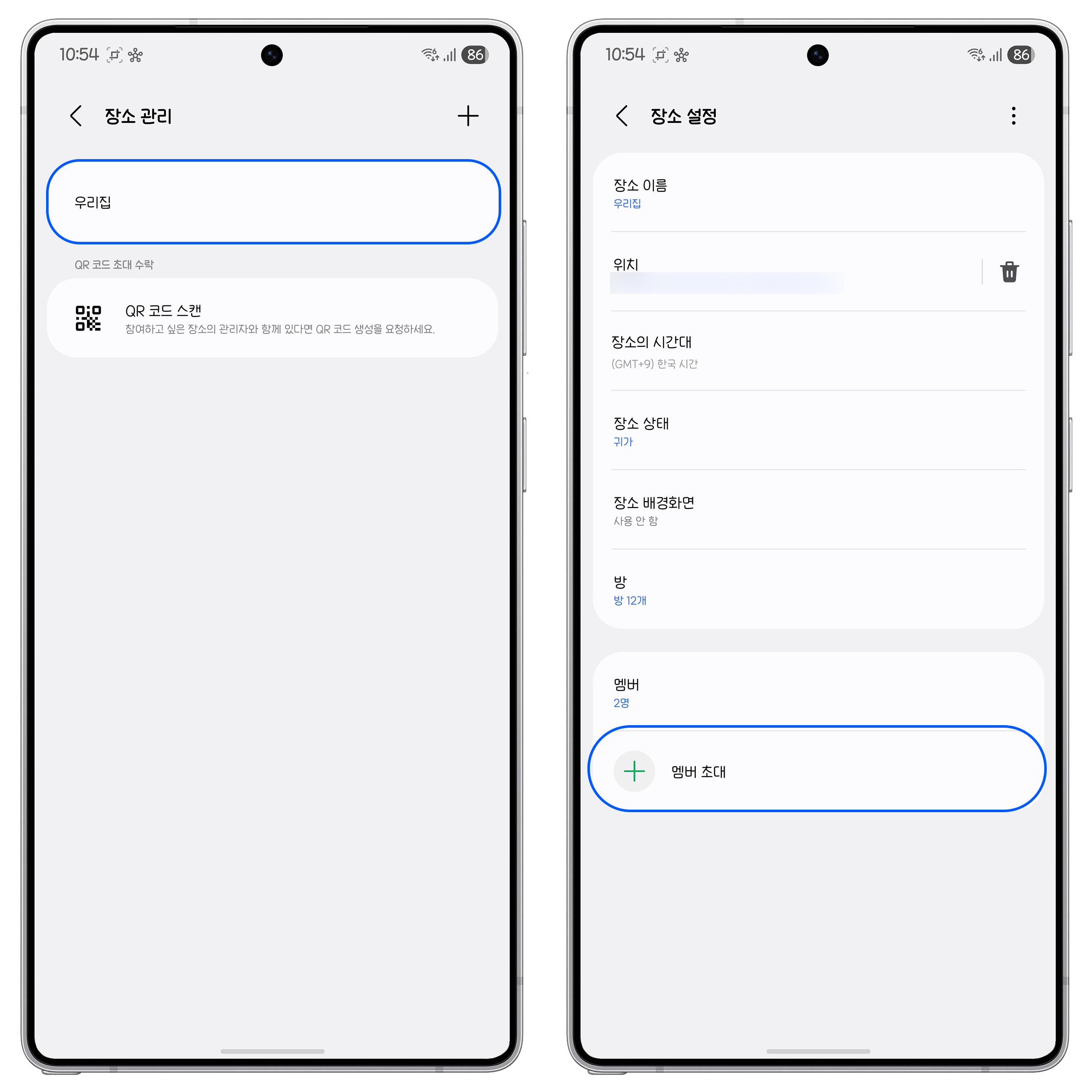 스마트 홈 구축 멤버 추가, 스마트싱스 우리집 멤버 구성원 초대하기