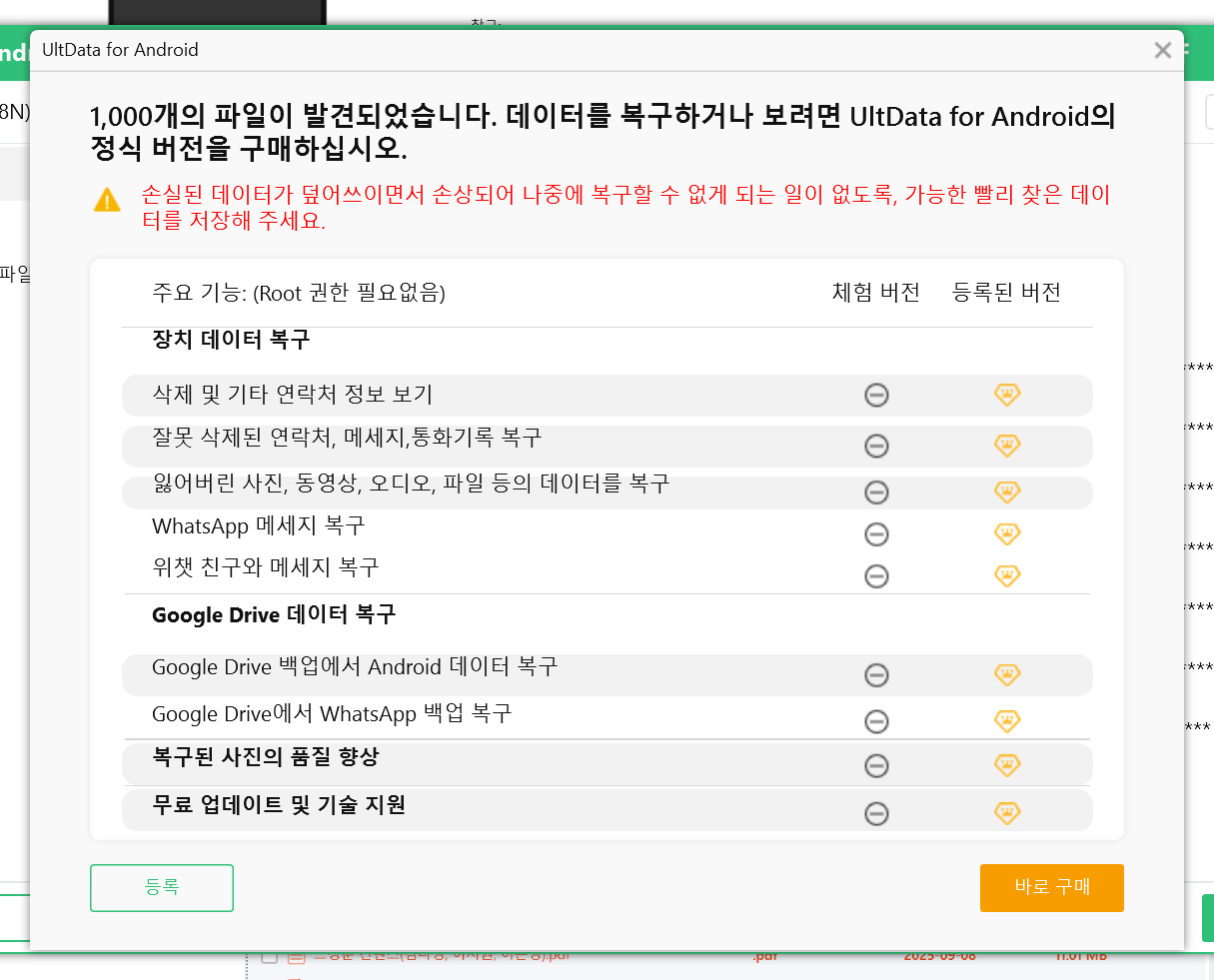 Tenorshare UltData for Android 는 일부 기능을 제외하고는 유료결제를 통한 서비스를 추가적으로 이용할 수 있습니다.
