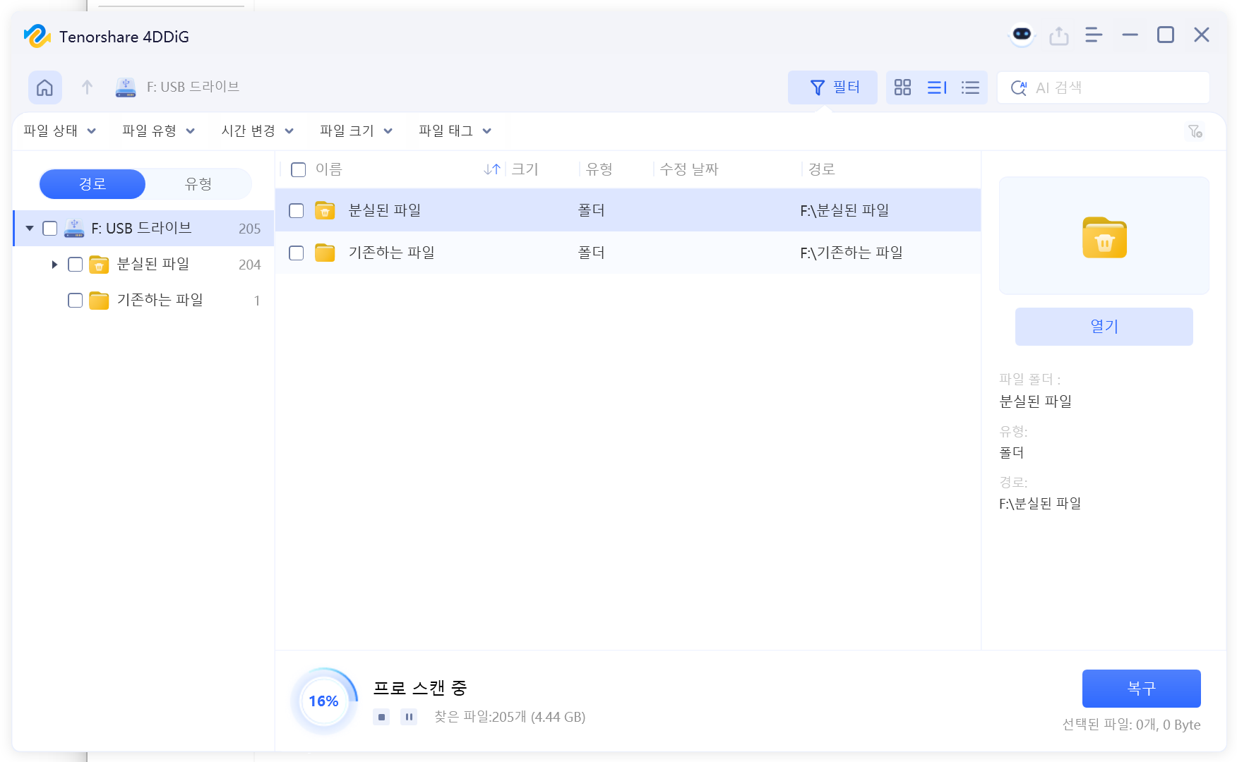 실수로 삭제한 USB 속 파일 삭제 데이터 파일 복원 - Tenorshare 4DDiG Data Recovery