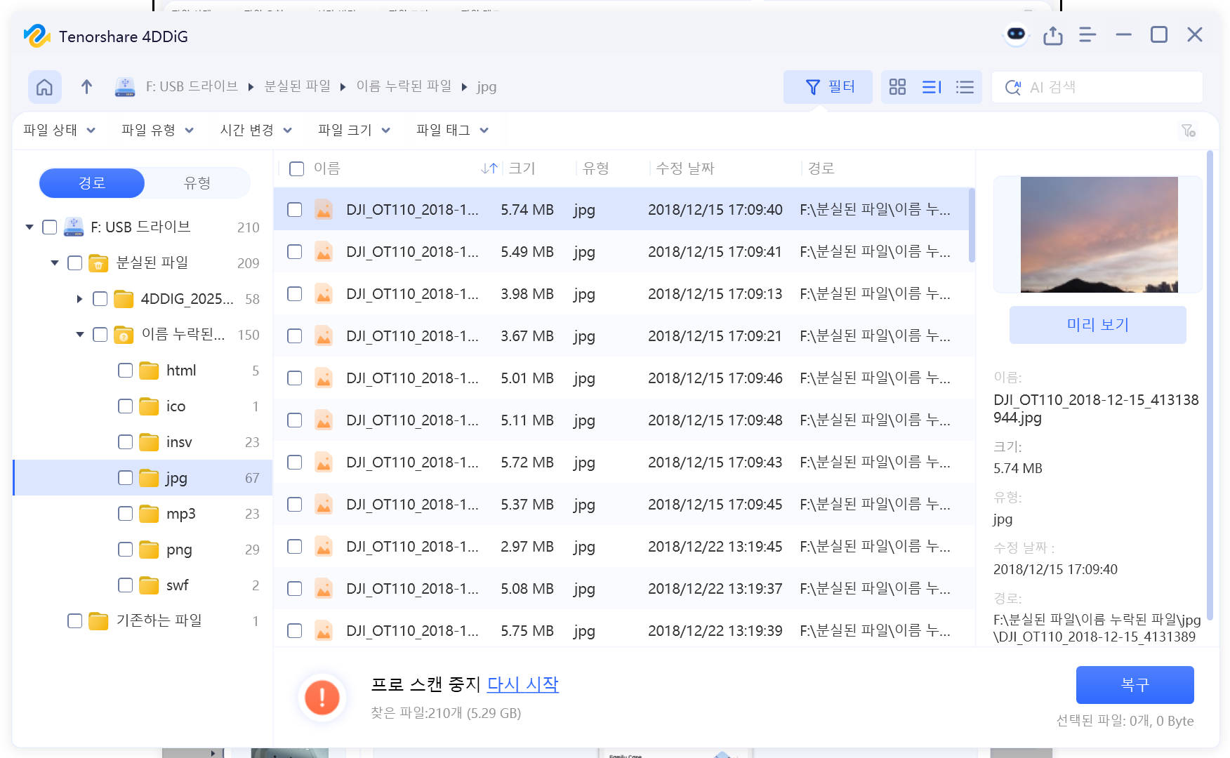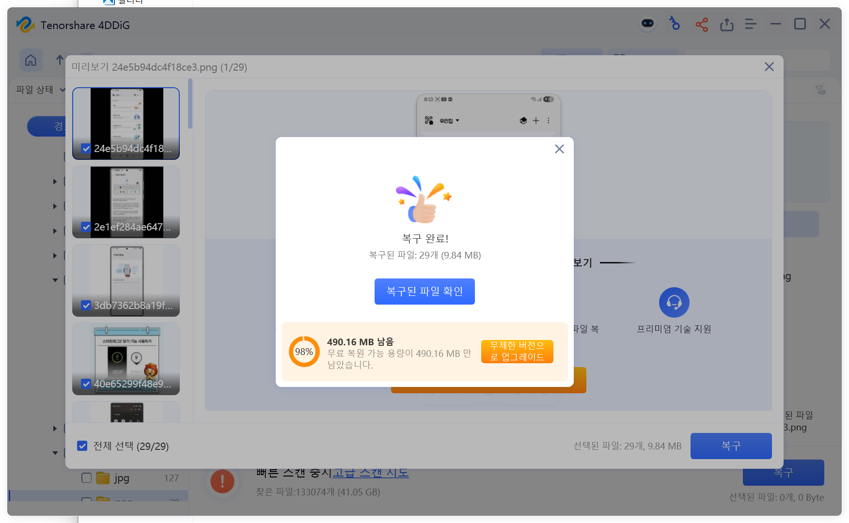 이 스캔된 파일을 미리보기를 통해 내가 복구하고자 하는 이미지가 맞는지 상태는 어떤지 등을 확인할 수 있습니다.