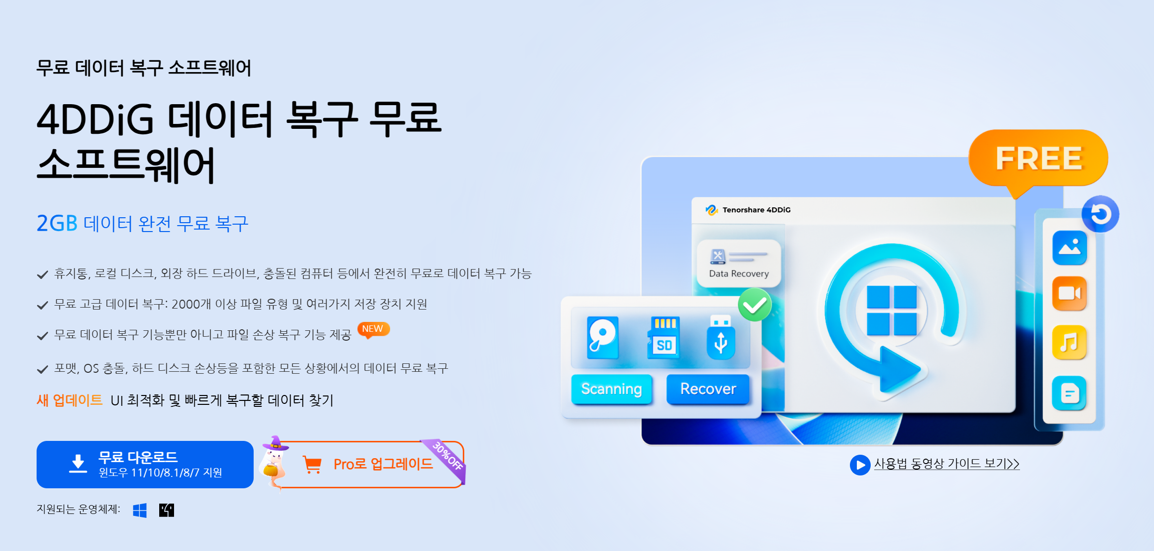 [공식] Tenorshare 4DDiG Windows 무료 데이터 복구 프로그램