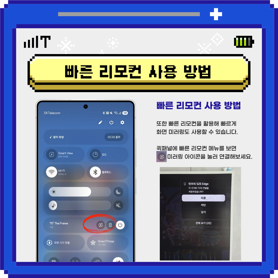 리모컨 메뉴 옆 '미러링 아이콘'을 눌러보세요.