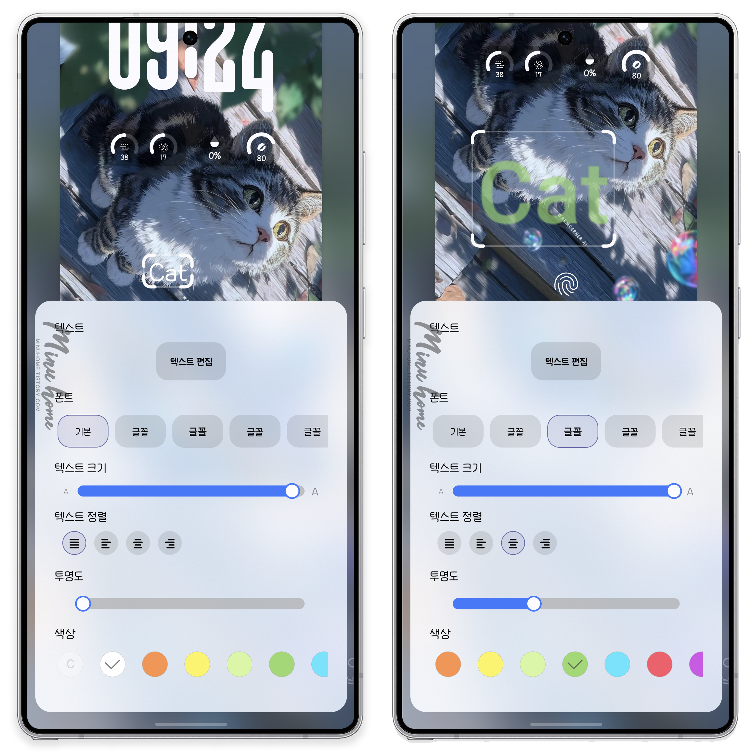 글 넣기를 선택하면 내가 넣을 텍스트를 입력할 수 있는데 저는 배경화면과 어울리는 'Cat'이라는 단어를 넣어봤습니다.