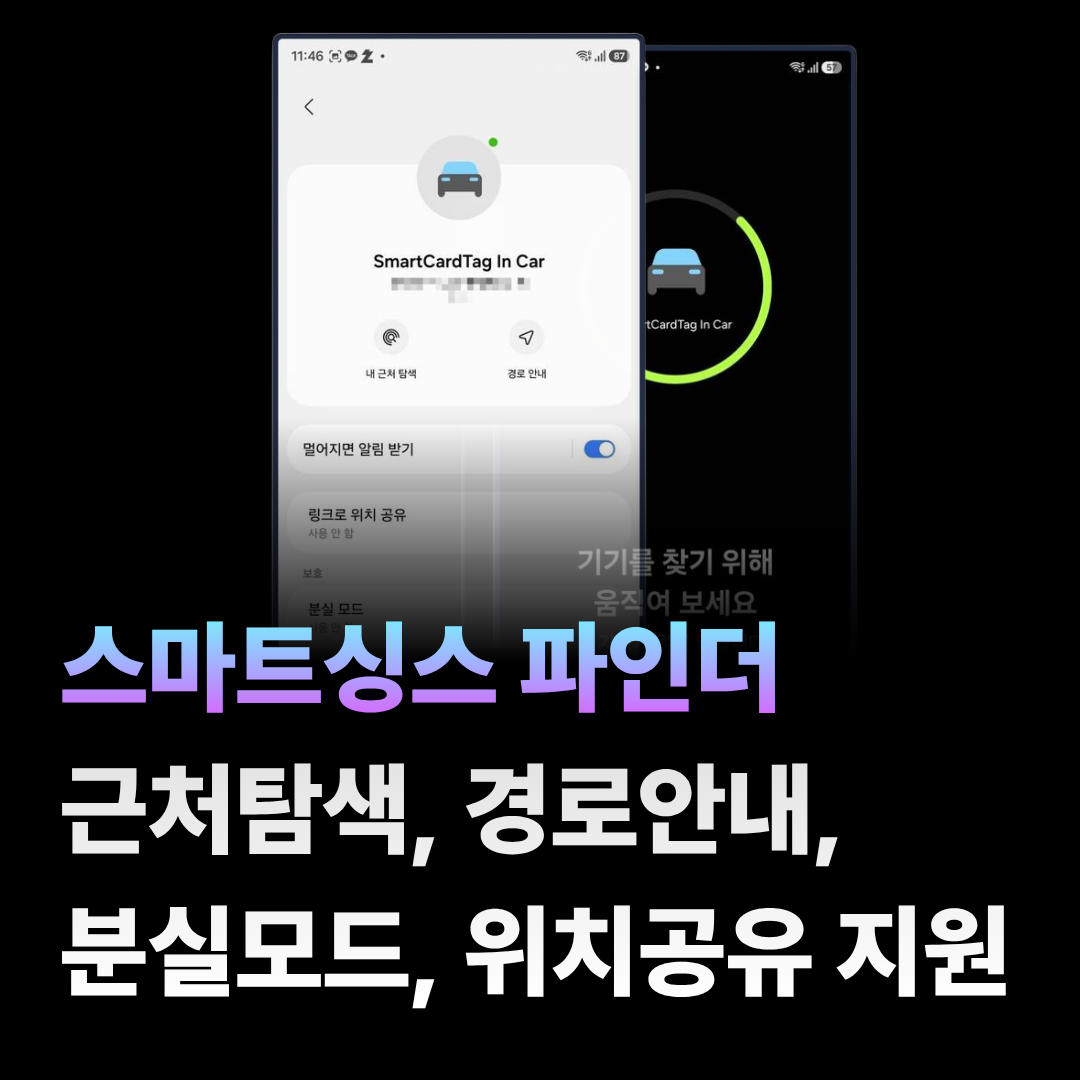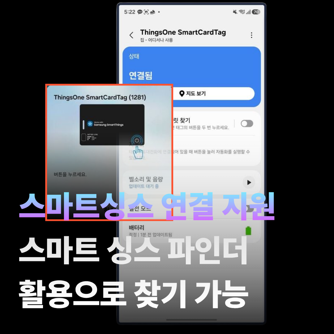 카드형 스마트태그는 스마트싱스를 지원하는 제품으로 스마트싱스 파인더를 활용해서 기기 찾기 기능을 지원합니다.