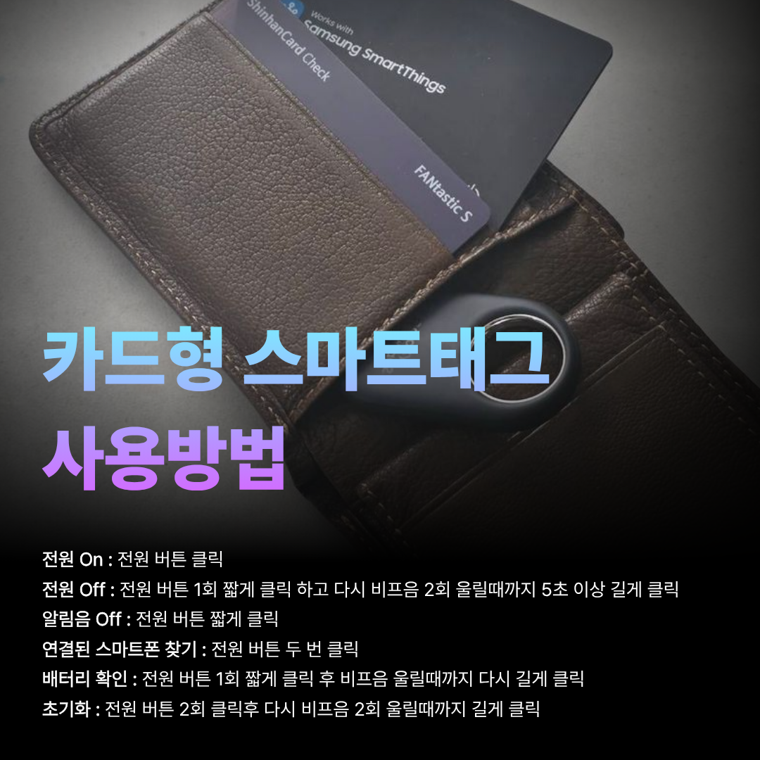스마트태그 2는 고리형으로 아쉬움이 있었지만 카드형태로 지갑에 보관하거나 다양한 형태로 활용할 수 있는 새로운 태그 제품이 나와서 이용자의 사용성에 따라 제품을 잘 활용하면 좋을 것 같습니다.