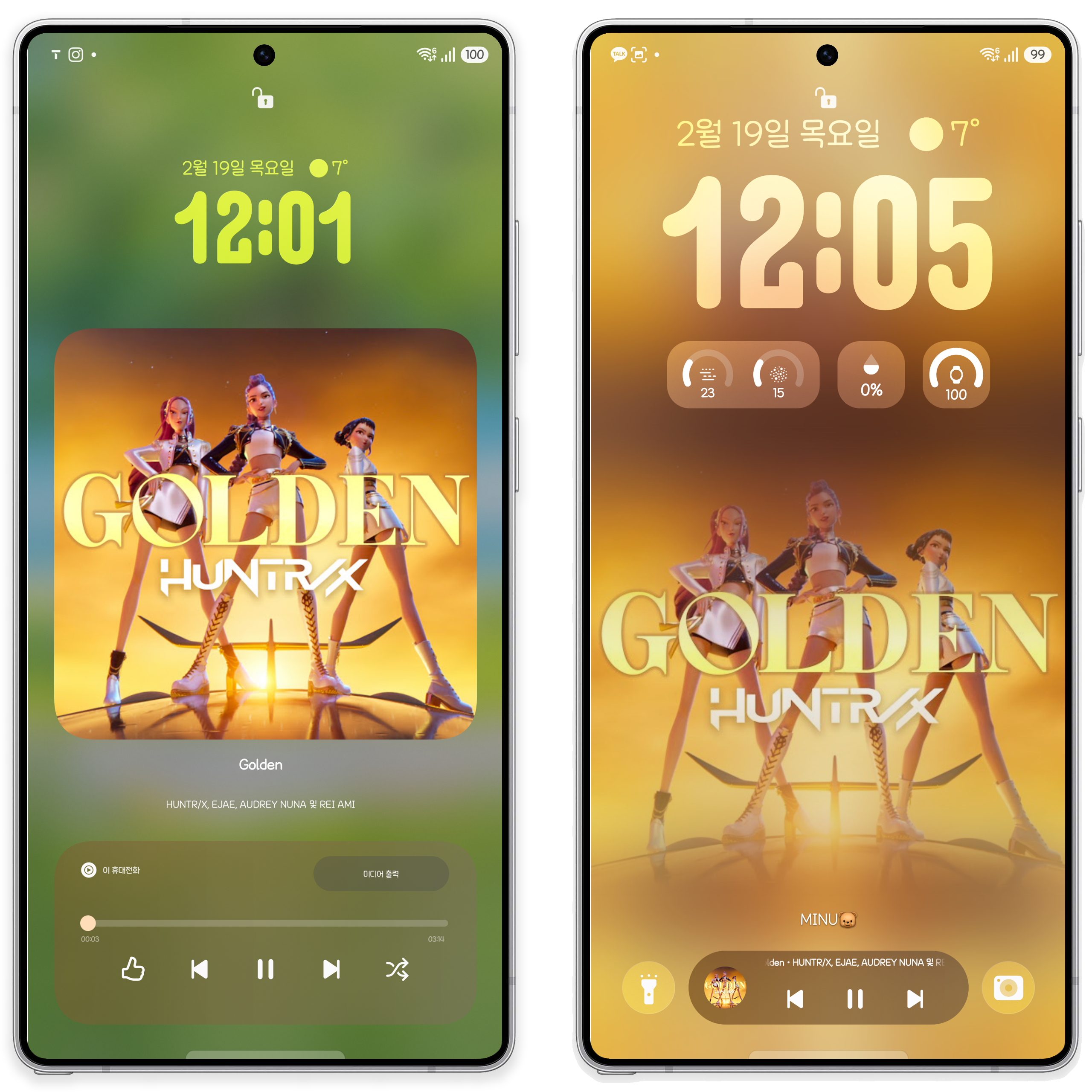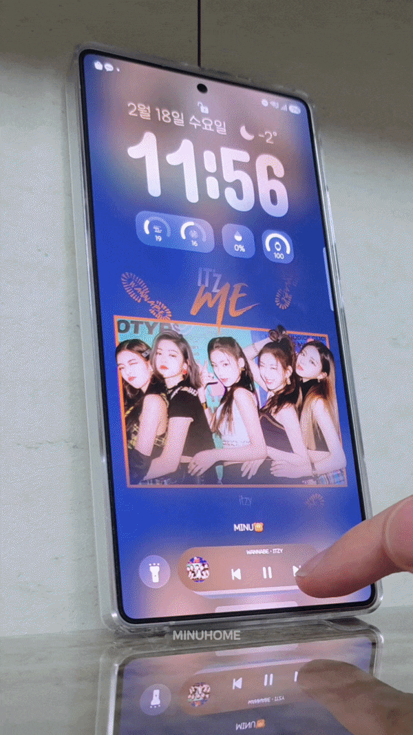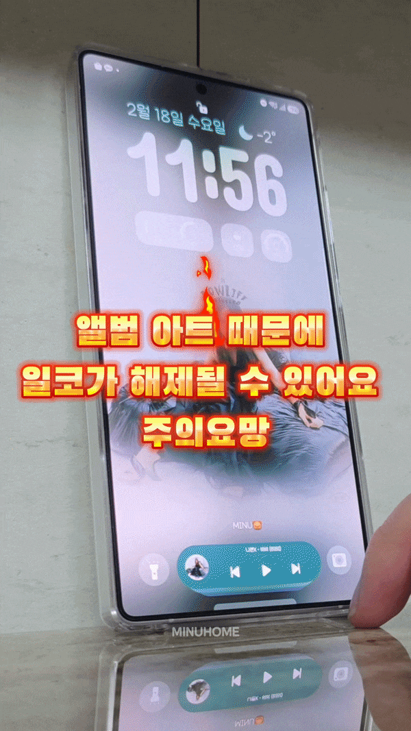 이 앱을 활용해서 잠금화면에 뮤직앨범을 풀커버 배경화면으로 한다면 시게도 크게, 알림도 볼 수 있고 잠금해제도 가능합니다.