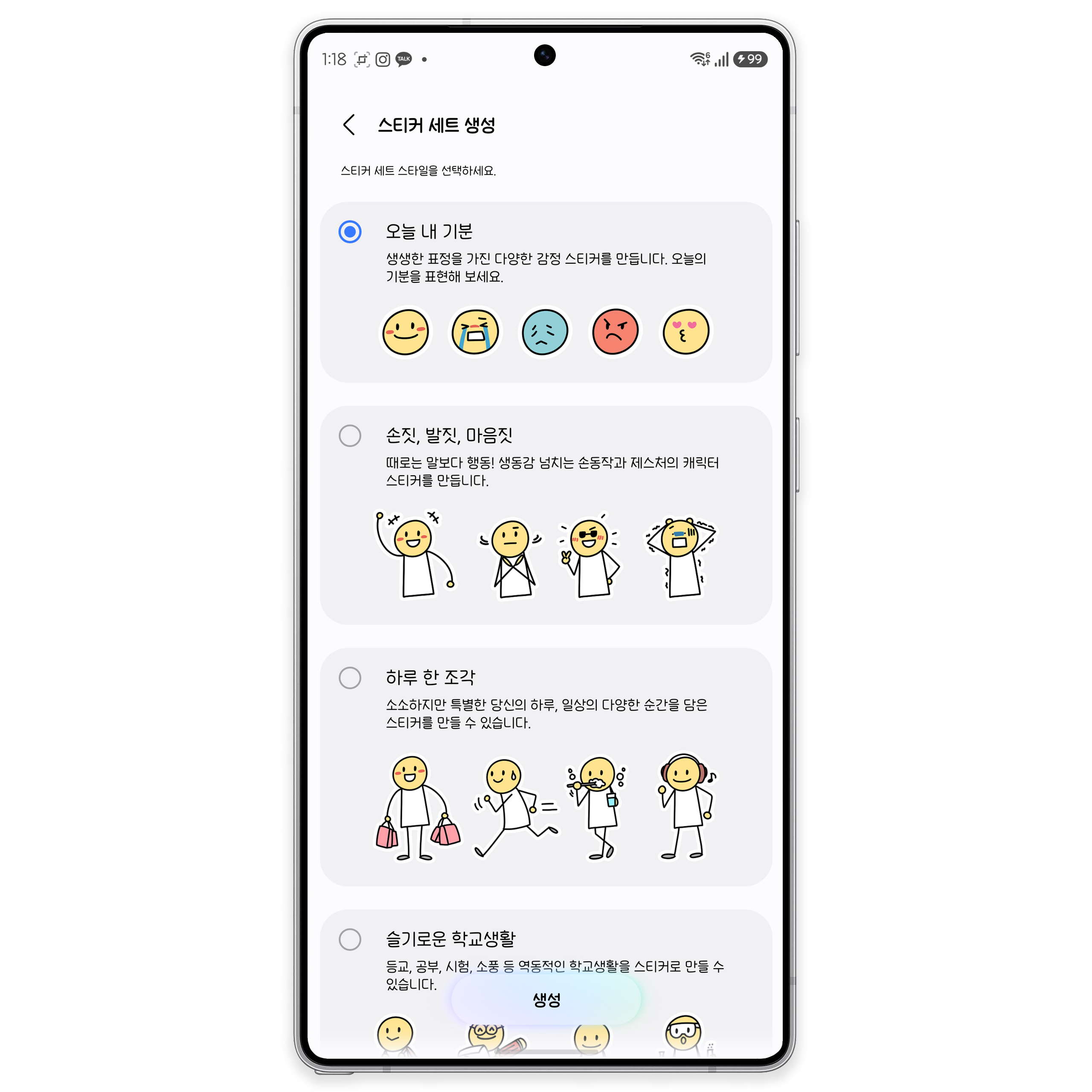 스티커 세트 생성 할 스타일도 선택이 가능한데요,
