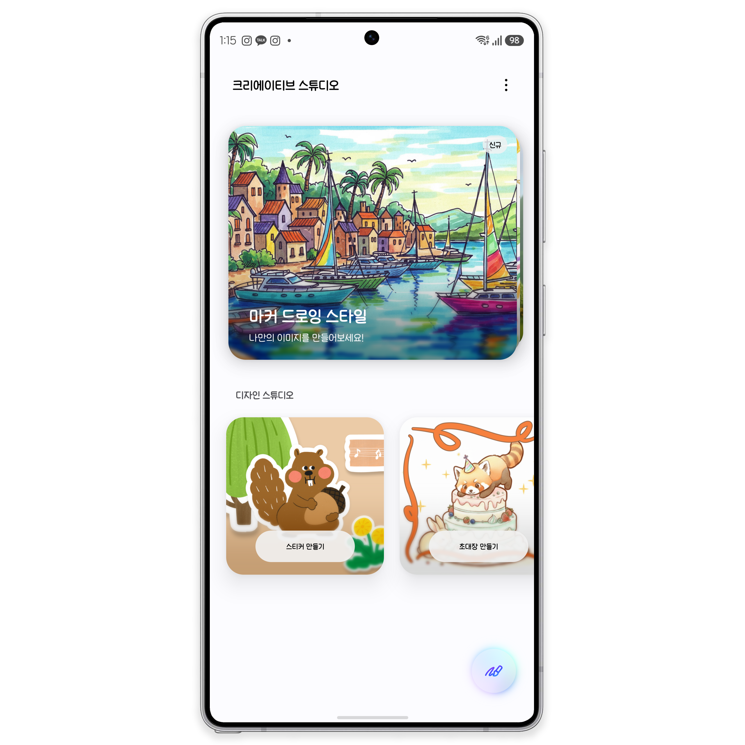 스티커, 배경화면, 카드 등 실사용 가능한 결과물로 빠르게 만들어주는 스마트한 창작 허브 역할을 합니다.