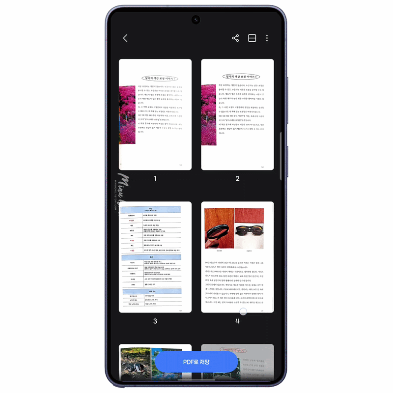 갤럭시 S26 에서는 멀티 스캔을 지원하여 여러 장의 문서를 연속으로 스캔하거나 수동으로 촬영 후 PDF 파일로 만들 수 있습니다.