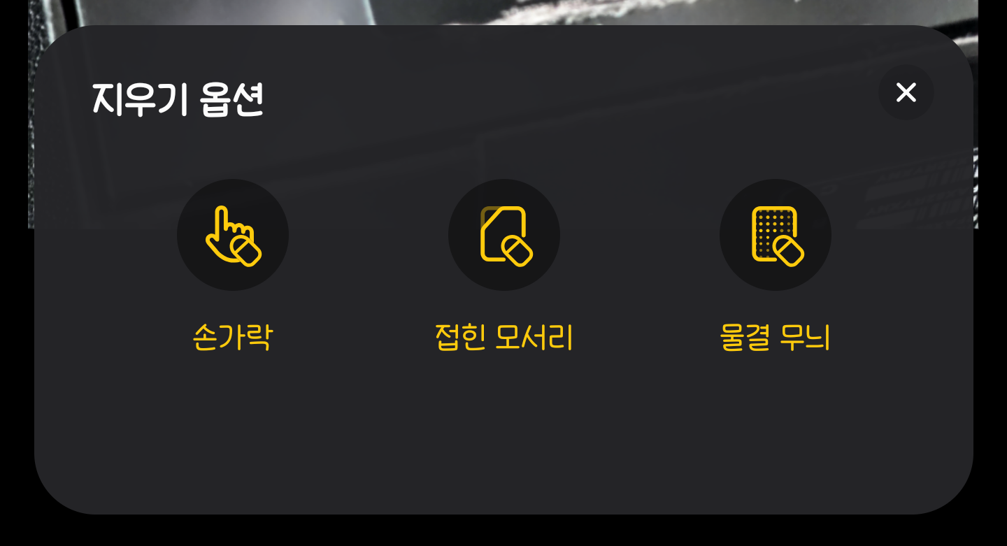 지우개의 경우 앞서 소개한 것 처럼 손가락이나 접힌 모서리 혹은 물결무늬를 선택해 지우거나 보존하는 역할을 할 수 있습니다.