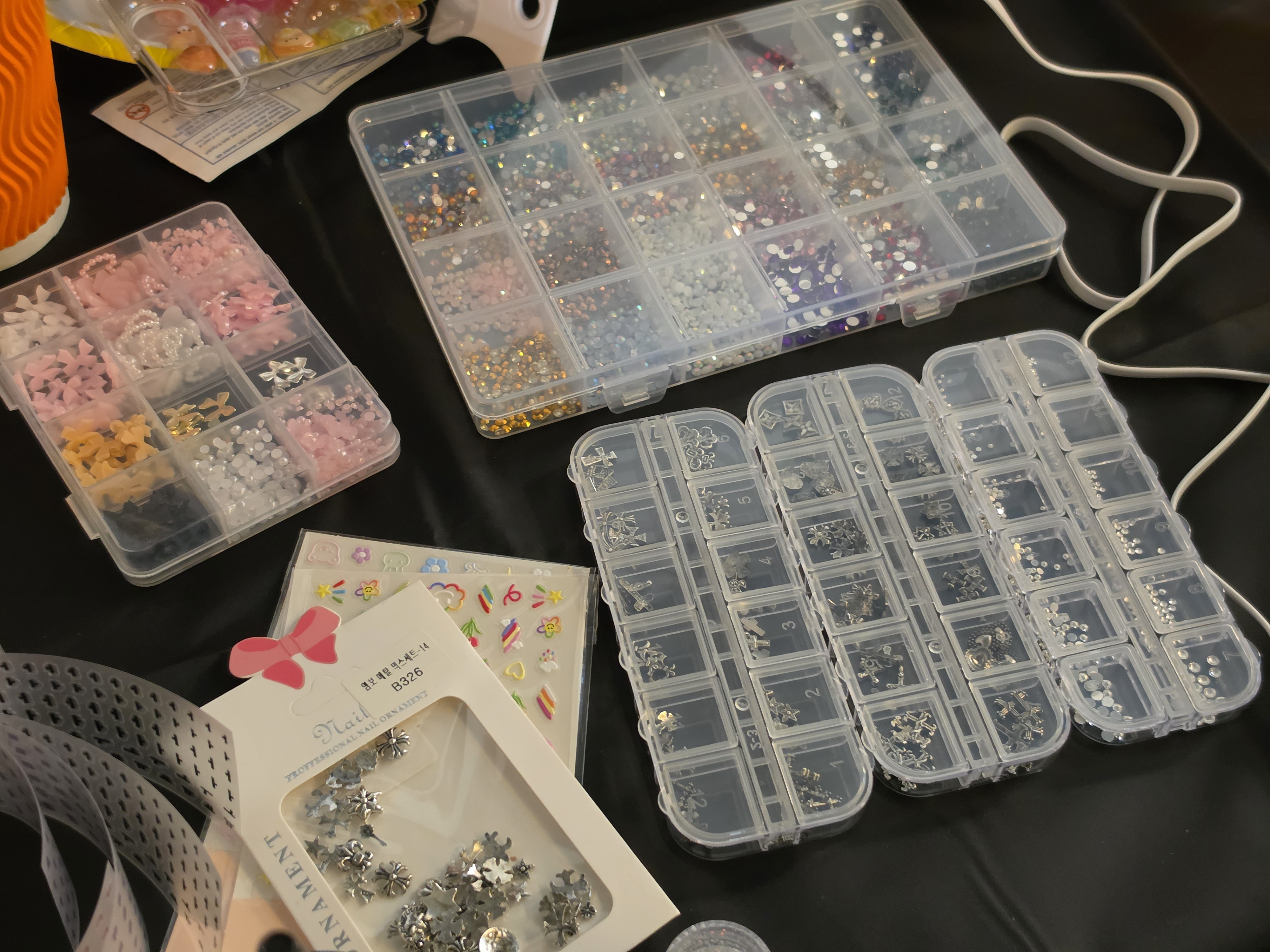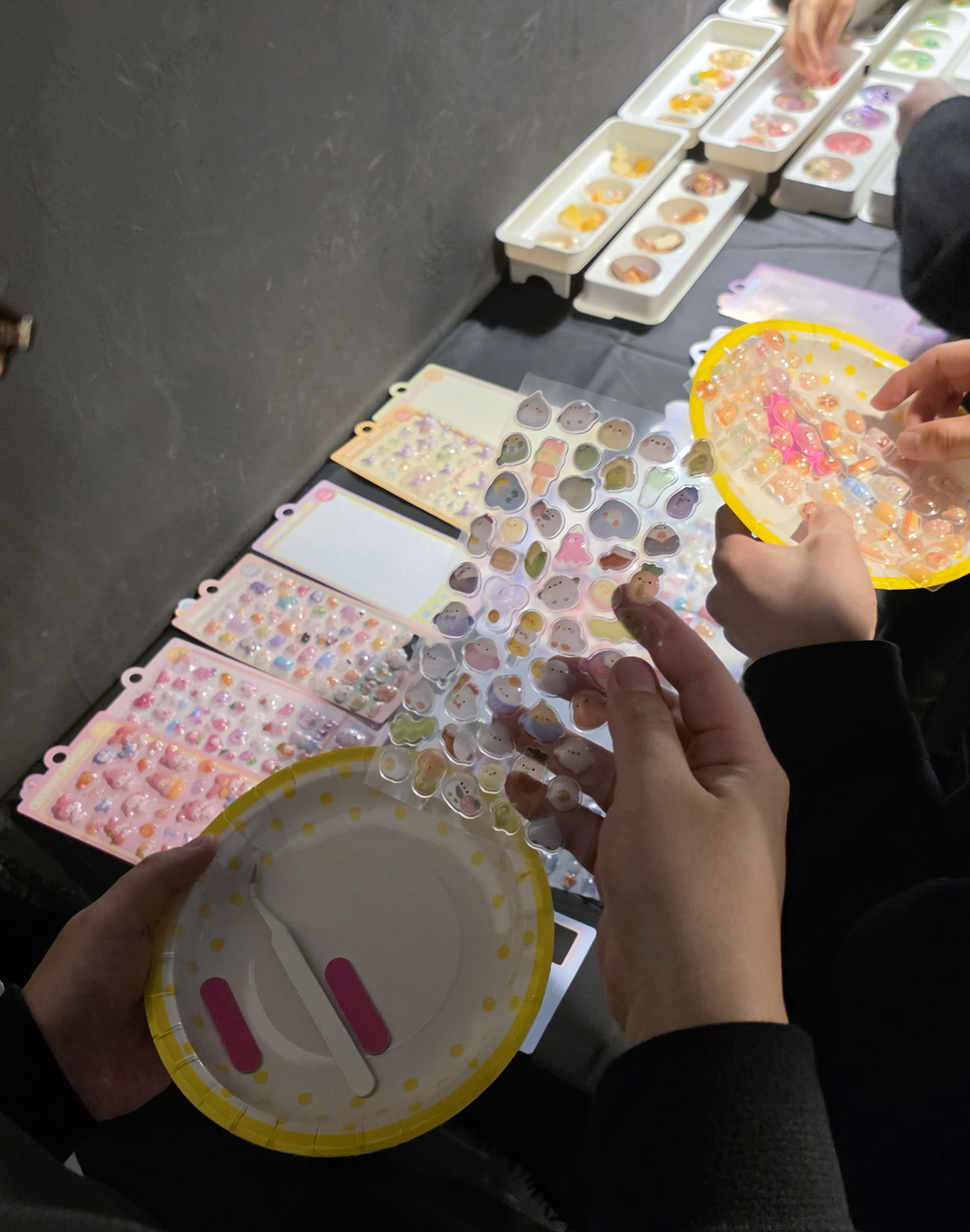 다양한 비즈들과 악세사리 그리고 스티커가 준비된 상황이라 원하는 디자인을 선택해서 사용할 수 있었습니다.