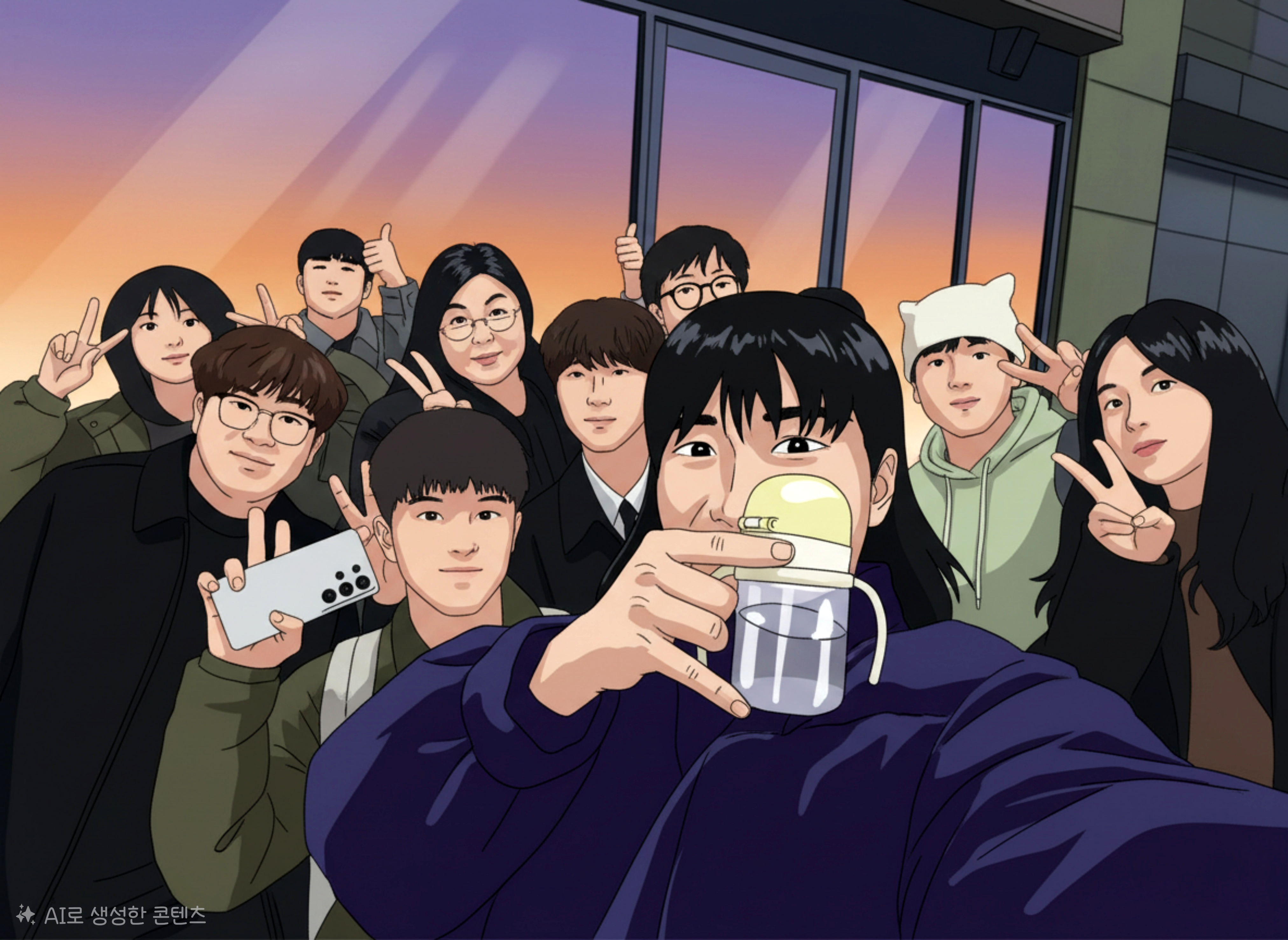 마무리는 단체샷~ 빠질 수 없죠 이번에 갤럭시 S26에 새롭게 추가 된 스타일 기능을 활용해 인스타 툰 느낌으로 변환해봤습니다~