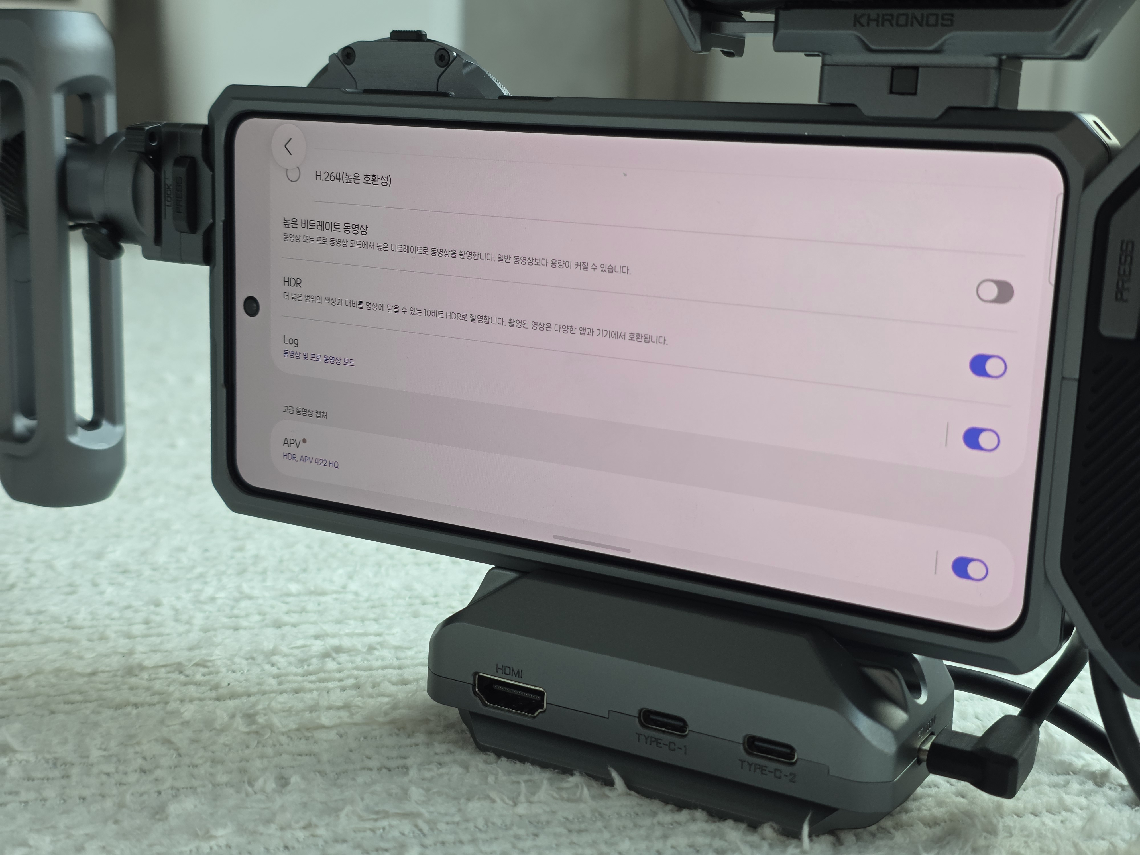 APV는 용량을 많이 차지하기 때문에 틸타 악세사리를 통해 외장 SSD를 장착해서 외장 메모리에 저장하는 형태로 사용도 가능합니다.