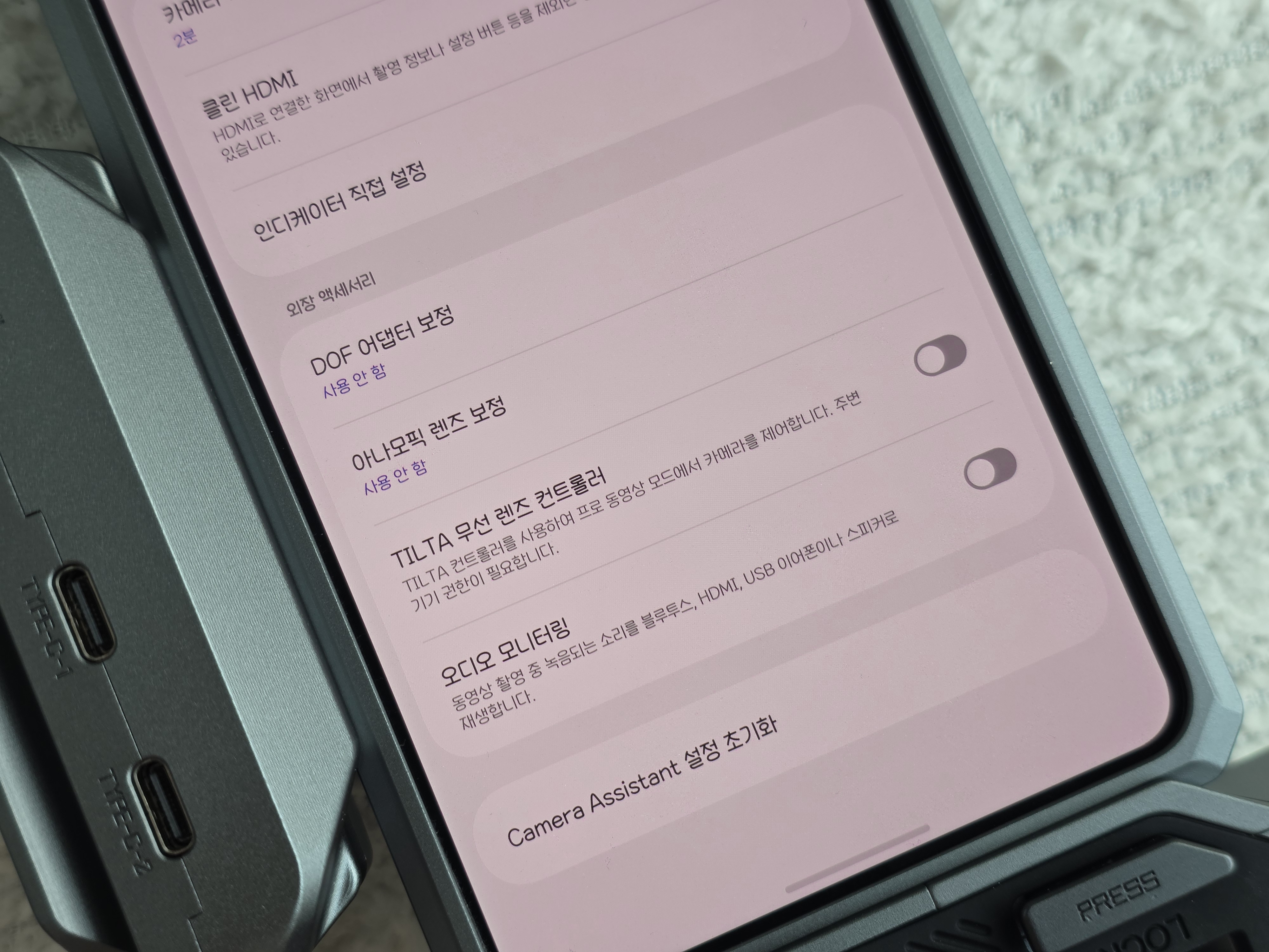 TILTA 무선 렌즈 컨트롤러를 활성화 해서 프로 동영상 모드에서 카메라를 제어할 수 있습니다.