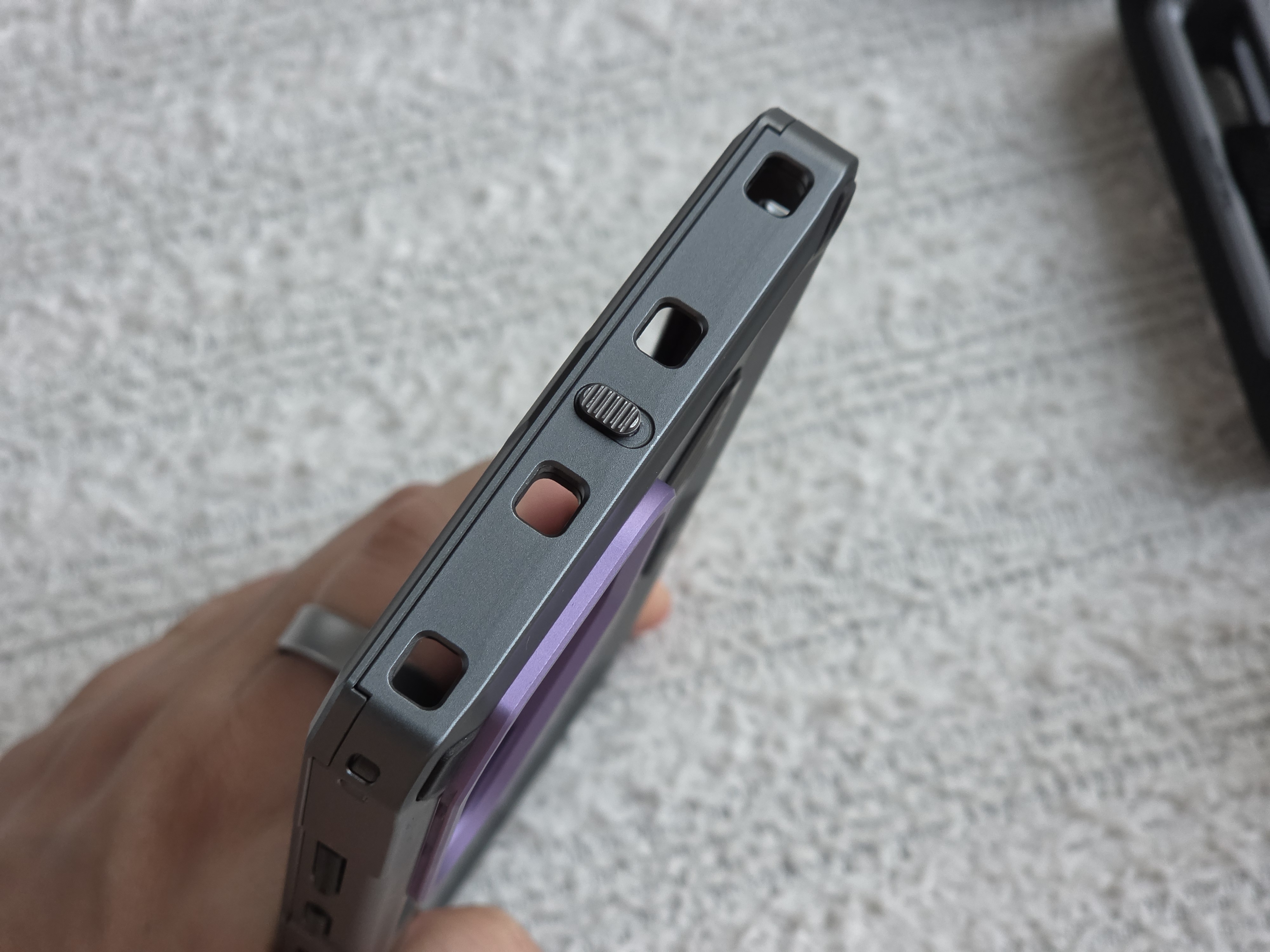 우선 구성품 중 퀵 릴리즈 케이스를 살펴보면 러기드케이스 같은 느낌을 받을 수 있습니다.