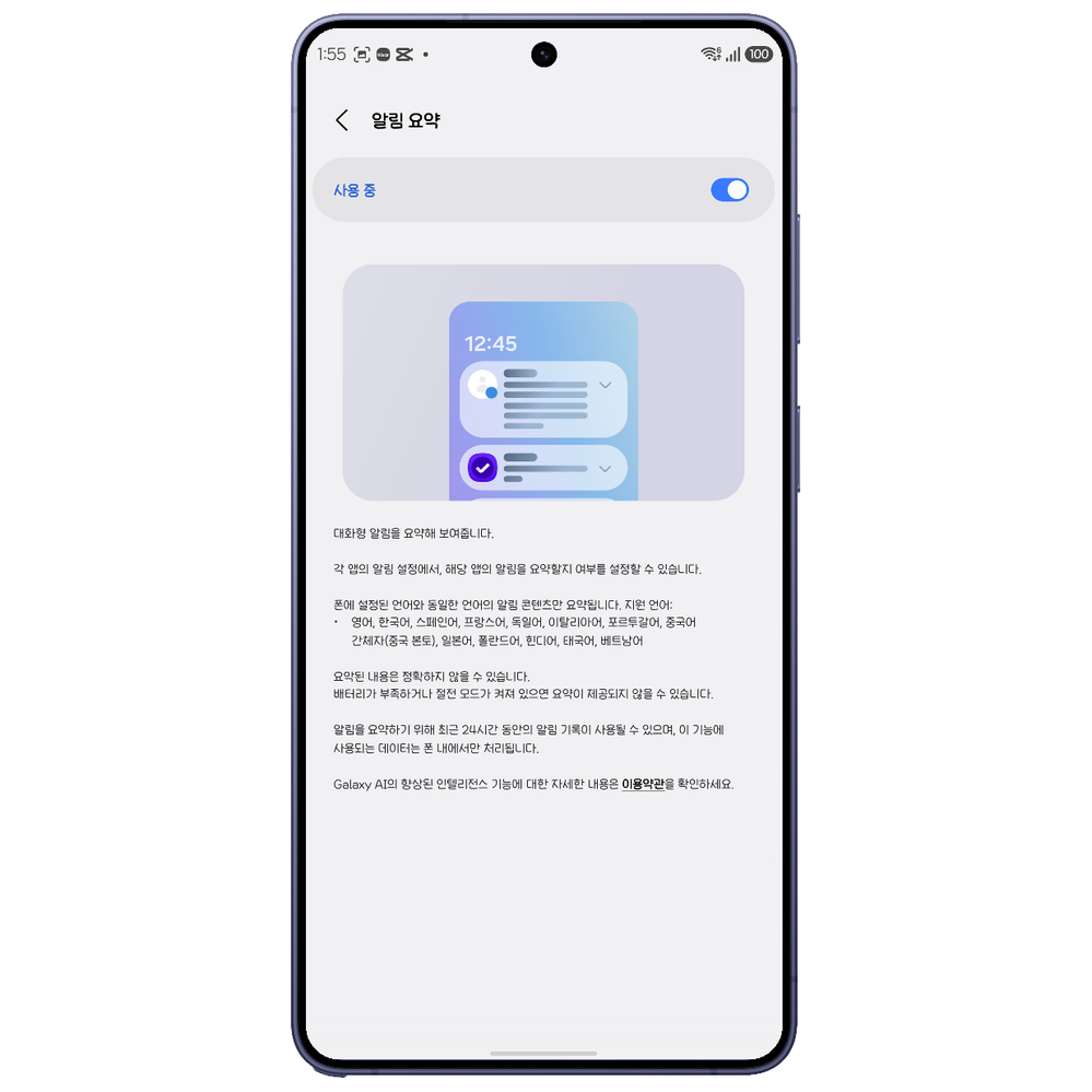 수많은 알림 중 중요한 정보를 우선순위에 따라 정리하고 요약해 주는 스마트한 기능입니다.
