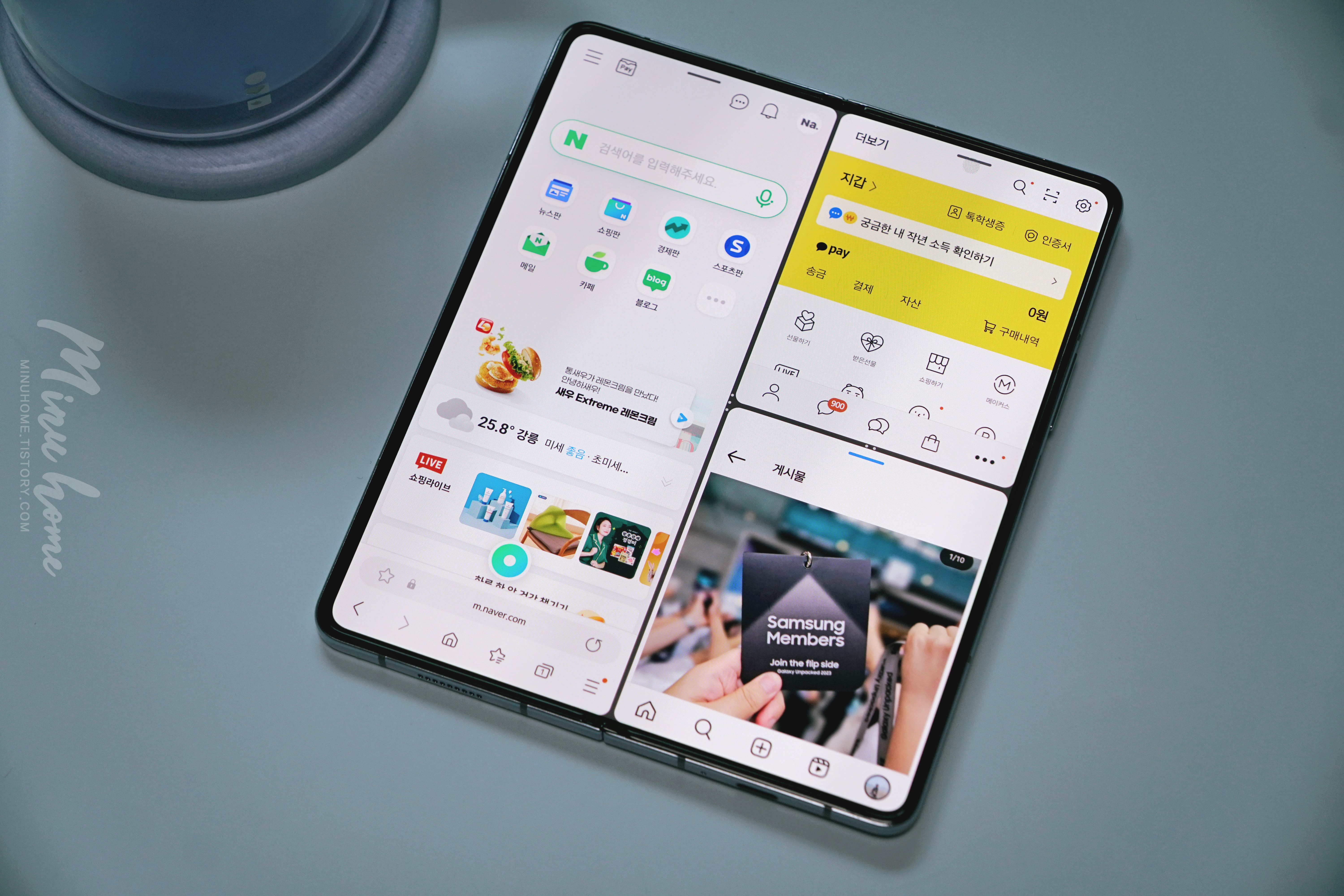 멀티작업에 정말 능하면서 다양한 앱을 여러 개 활용할 수 있다는 측면에서 태블릿을 완벽하게 대응하는 정도는 아니지만 폴더블 스마트폰의 기본 기조는 가지고 있는 제품입니다.
